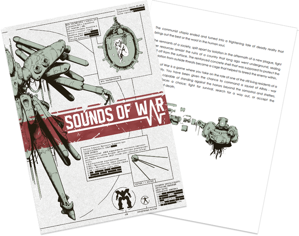 Sounds of War is a post-apocalyptic mech skirmish game. The communist utopia has collapsed, eroded by a mysterious plague and horrors it has unleashed. The survivors are now trapped in an underground city. Your ARM, a trusty mech, is your best bet in a brutal struggle for resources.